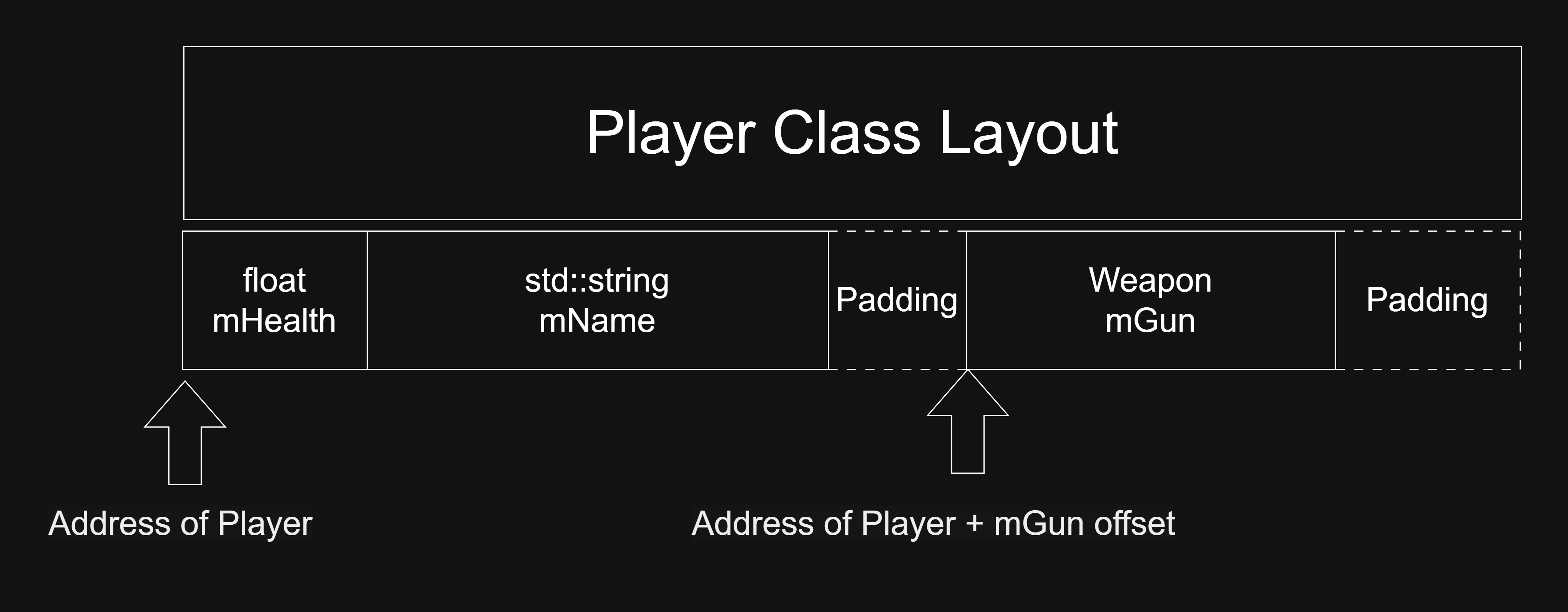In order to create an interface for both C++ and fictional types, I designed fictional types to closely mimick how C++ classes work. A class in C++ is mostly just a buffer, with different offsets representing different subobjects inside that object.